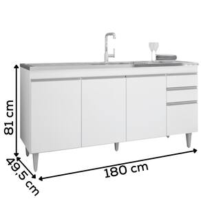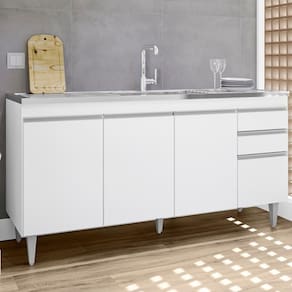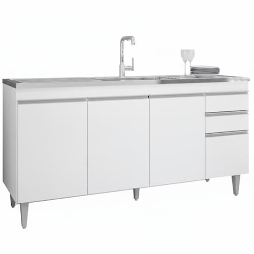 Balcão Para Pia Agatha, ideal para compor sua cozinha com funcionalidade e eficiência! Estrutura em MDP 15 mm com acabamento BP. Composto por portas com dobradiças metálicas e gavetas com corrediças metálicas, ambas com puxadores em perfil de alumínio, além de amplo espaço interno. Acompanha também pés em plástico com regulagem de altura. TAMPO/PIA NÃO INCLUSO. Produto será entregue em 01 volume.