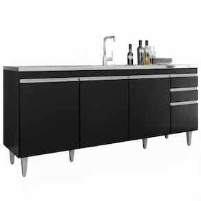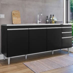 Balcão Para Pia Agatha, ideal para compor sua cozinha com funcionalidade e eficiência! Estrutura em MDP 15 mm com acabamento BP. Composto por portas com dobradiças metálicas e gavetas com corrediças metálicas, ambas com puxadores em perfil de alumínio, além de amplo espaço interno. Acompanha também pés em plástico com regulagem de altura. TAMPO/PIA NÃO INCLUSO. Produto será entregue em 01 volume.
