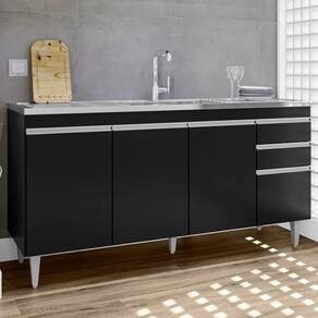 Balcão Para Pia Lorena, ideal para compor sua cozinha com funcionalidade e eficiência! Estrutura em MDP 15 mm com acabamento BP. Composto por portas com dobradiças metálicas e gavetas com corrediças metálicas, ambas com puxadores em perfil de alumínio, além de amplo espaço interno. Acompanha também pés em plástico com regulagem de altura. TAMPO/PIA NÃO INCLUSO. Produto será entregue em 01 volume.