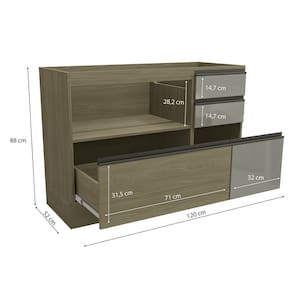 Design versátil que une beleza, resistência e praticidade no seu dia a dia. O Balcão para pia com 120 cm de largura, é fabricado 100% em MDP com espessura de 15mm, acabamento em pintura texturizada UV (fosco) ou (semibrilho). Conta com 1 porta basculante equipada com dobradiça reta de 35mm com amortecedor e pistão a gás, 4 gavetas (sendo 2 gavetão) e 3 em vidro de 3mm com corrediças telescópicas e puxadores em alumínio. Possui sistema de montagem flex, podendo ser instalado suspenso, ou com rodapé adaptando-se ao seu projeto e à sua necessidade. Este móvel chegará na sua casa separado em 01 volume.