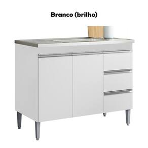 Balcão para Pia Andreia (sem tampo), compacto e funcional trazendo praticidade para seu dia a dia. Estrutura em MDP (12/ 15 mm - fundo 3 mm). Composto por portas e gavetas com dobradiças e corrediças metálicas, 1 prateleira interna e puxadores em alumínio. Pés em plástico com regulagem, garantindo estabilidade em qualquer piso. TAMPO/ PIA NÃO INCLUSO. Produto será entregue em 01 volume.