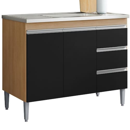 Balcão para Pia Andreia (sem tampo), compacto e funcional trazendo praticidade para seu dia a dia. Estrutura em MDP (12/ 15 mm - fundo 3 mm). Composto por portas e gavetas com dobradiças e corrediças metálicas, 1 prateleira interna e puxadores em alumínio. Pés em plástico com regulagem, garantindo estabilidade em qualquer piso. TAMPO/ PIA NÃO INCLUSO. Produto será entregue em 01 volume.
