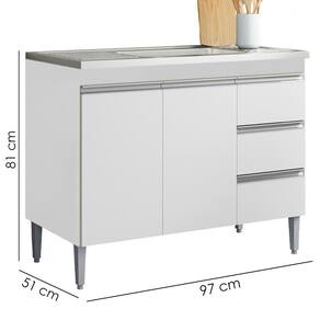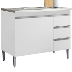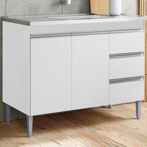 Balcão para Pia Andreia (sem tampo), compacto e funcional trazendo praticidade para seu dia a dia. Estrutura em MDP (12/ 15 mm - fundo 3 mm). Composto por portas e gavetas com dobradiças e corrediças metálicas, 1 prateleira interna e puxadores em alumínio. Pés em plástico com regulagem, garantindo estabilidade em qualquer piso. TAMPO/ PIA NÃO INCLUSO. Produto será entregue em 01 volume.