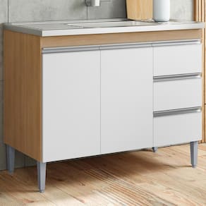 Balcão para Pia Andreia (sem tampo), compacto e funcional trazendo praticidade para seu dia a dia. Estrutura em MDP (12/ 15 mm - fundo 3 mm). Composto por portas e gavetas com dobradiças e corrediças metálicas, 1 prateleira interna e puxadores em alumínio. Pés em plástico com regulagem, garantindo estabilidade em qualquer piso. TAMPO/ PIA NÃO INCLUSO. Produto será entregue em 01 volume.