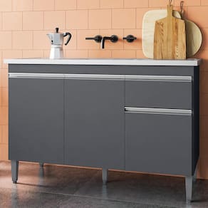 O Balcão Pia 118 cm 3 portas Tatiane é a escolha perfeita para quem busca qualidade e sofisticação ao personalizar sua cozinha conforme desejado. Fabricado com uma estrutura em MDP, este balcão apresenta um acabamento com pintura UV. O móvel é composto por 3 portas equipadas com dobradiças metálicas, uma gaveta com corrediças telescópicas, puxadores em PVC, espaço de 118 m designado para colocação de pia (pia não inclusa), prateleira interna para a organização de itens de cozinha e acompanha pés em PVC. Todo o processo é conduzido com controle de qualidade, resultando em um excelente acabamento.