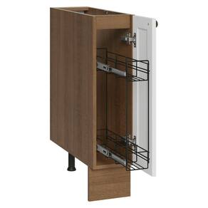 O acabamento da estrutura é no tom amadeirado Rustic e da porta em Branco, com uma textura suave ao toque. O puxador ponto em ouro envelhecido adiciona personalidade. Já o detalhe chanfrado das frentes remete ao estilo americano com um toque moderno.