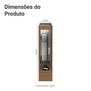 Cor: Cinza | Garantia: 12 meses | Dimensões - Altura: 81 cm | Dimensões - Largura: 20 cm | Dimensões - Profundidade: 52 cm | Produto: Cozinha | Marca: Madesa | Peso aproximado: 12 kg | Material: MDP | Estado de Origem: RS | Conteúdo da embalagem: 1 Balcão Gabinete | Material para Filtro: MDP | Instruções/Cuidados: Utilize um pano limpo, levemente umedecido e seque em seguida a superfície. Não usar produtos químicos ou abrasivos para a limpeza. Recomendamos polir seu móvel com lustra-móveis duas a três vezes por ano. | Produto precisa de Montagem?: Sim | Peso Produto Com Embalagem (Kg): 12,20 | Altura do Produto com Embalagem (cm): 54,10 | Largura Produto Com Embalagem (cm): 50,40 | Comprimento Produto Com Embalagem (cm): 80,80 | Descrição do Tamanho: 81 cm x 20 cm x 52 cm | Nome do Simples no Fornecedor: Balcão Porta-Temperos 20 cm 1 Porta (Sem Tampo) Rustic/Cinza Vik Madesa | Fabricante: Madesa | RBN: Casa/Móveis/Móveis de Cozinha | Materiais do corpo: MDP | Quantidade de caixas de embalagem: 3 | Bullet Point 1: Dimensões: 81 cm altura x 20 cm largura x 52 cm profundidade | Bullet Point 2: O organizador metálico interno possui deslizamento suave com abertura total. | Bullet Point 3: O puxador ponto em ouro envelhecido, feito com metal resistente, trazem personalidade e um charme único. | Bullet Point 4: Possui acabamento de alta resistência, conservando a beleza do móvel por muito mais tempo. | É Frágil: Não | Quantidade de Itens: 1 | Certificação de teste externa: Sim | Precisa de baterias ou pilhas: Não | da peça (part_number): G24208F9VKST | Peso do item (item_weight): value=12.02;unit=kilograms | Dimensões do item P x L x A (item_depth_width_height): depth#value=52;depth#unit=centimeters;height#value=81;height#unit=centimeters;width#value=20;width#unit=centimeters | Exige montagem (is_assembly_required): Sim | Requer montagem (REQUIRES_ASSEMBLY): Sim | Inclui manual de montagem (INCLUDES_ASSEMBLY_MANUAL): Sim | do modelo (model_number): G24208F9VKST | is_assembly_required: Sim | Tipo de móveis de cozinha: Balcão | Linha: Vik | Componetes Incluidos: Portas | Cor: Rustic/Cinza