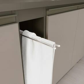 Compacto e funcional o Balcão Porta Toalha Com Tampo foi desenvolvido para facilitar tarefas do dia a dia! Estrutura 100% MDF 15 mm(fundo 3 mm) com acabamento em pintura UV texturizada. Composto por nicho central que contém porta toalha interno (em alumínio), além de tampo também em MDF (25 mm). Produto será entregue em 02 volumes.
