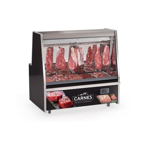 O Balcão Refrigerado Açougue Turino Standard GATS-150 PR da Gelopar é ideal para a conservação e exposição de carnes (não congeladas), oferecendo refrigeração estática com evaporador aletado na parte superior e serpentina de cobre embutida na base, mantendo temperaturas entre 0 a +7C. Com revestimento interno em aço inox 430 e externo em aço injetado, o balcão possui iluminação LED interna, dois tendais duplos em alumínio com ganchos, e permite a montagem com prateleiras aramadas ou tendal. Equipado com controlador eletrônico de temperatura e degelo manual, o balcão também possui vidro frontal temperado e várias opções de acessórios, sendo um produto robusto e eficiente para uso comercial.