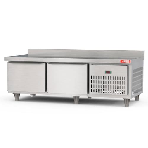 Este balcão possui um revestimento interno e externo em aço inox, garantindo durabilidade e resistência. O isolamento térmico em poliuretano injetado (com lã de rocha na parte superior) assegura a eficiência energética do equipamento. As portas em aço inox sobrepostas e reforçadas oferecem robustez e segurança, enquanto os pés com regulagem de altura proporcionam flexibilidade no posicionamento do balcão.