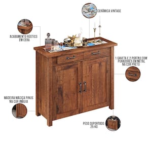 Ter um móvel com um toque rústico em casa faz toda a diferença, por isso o Balcão Sala De Estar Com Cerâmica Vintage Alabama 02 Portas W02 Madeira Maciça Imbuia - Lyam Decor traz todos os detalhes muito característicos deste estilo para tornar qualquer espaço único. Ideal para compor área de lazer, espaço gourmet ou até mesmo para evidenciar ainda mais o natural na sua decoração dentro de casa. Possui uma gaveta que o torna ainda mais funcional para uso diário e armazenamento de objetos, além de trazer um ar incrivelmente convidativo e charmoso. Pra finalizar, possui um detalhe de cerâmica vintage que valoriza a peça e dá todo o charme a sua base superior.