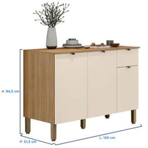 Características: Marca: Kits Paraná Tipo: Balcão Quantidade de portas: 3 portas Quantidade de gavetas: 1 gaveta Material da estrutura: MDF Material dos puxadores: Alumínio Tampa: Não