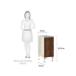 Balcão De Cozinha Sem Tampo 35cm 1 Porta Luci Luciane Móveis Legno Crema Com Nogueira Dourado