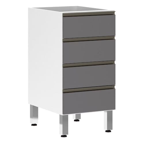 Balcão De Cozinha Sem Tampo 40cm 4 Gavetas Pérola Luciane Móveis Branco Polar Com Cinza Puro Balcão Luciane Pérola tudo que sua cozinha precisa. Amplo espaço para organização de seus utensílios, além de um designer inovador.