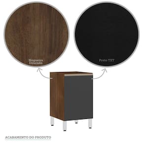 Balcão De Cozinha Sem Tampo 40cm 1 Porta Jade Luciane Móveis Nogueira Dourado Com Preto Txt