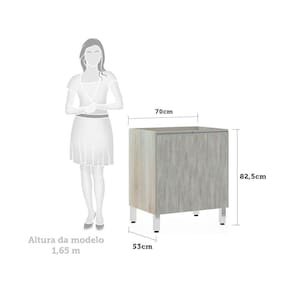 Balcão Sem Tampo 70cm Lis Legno Crem e Concreto - Prata