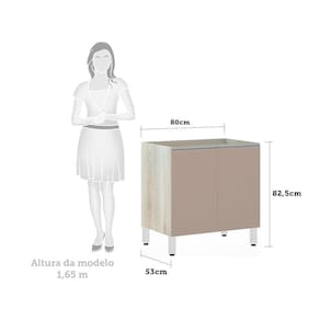 Balcão De Cozinha Sem Tampo 80cm 2 Portas Lis Luciane Móveis Legno Crema Com Connect