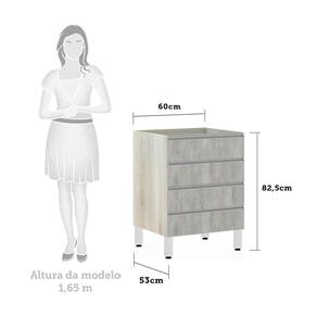 Balcão De Cozinha Sem Tampo Gaveteiro 60cm 4 Gavetas Lis Luciane Móveis Legno Crema Com Concreto