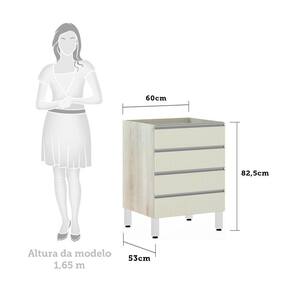 Balcão De Cozinha Sem Tampo Gaveteiro 60cm 4 Gavetas Lis Luciane Móveis Legno Crema Com Kashmir