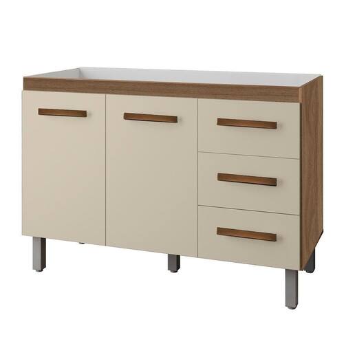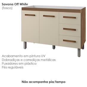 Produto: Balcão Sem Tampo | Tonalidade: Multicolorido | Acompanha Pia de Cozinha: Sem Pia Cor: Savana Off White
