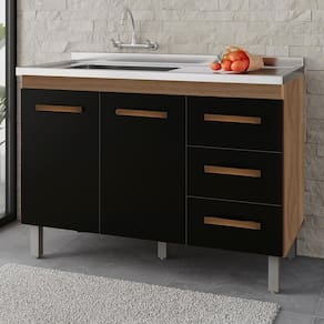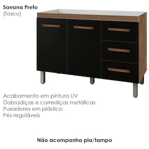 Produto: Balcão Sem Tampo | Tonalidade: Multicolorido | Acompanha Pia de Cozinha: Sem Pia Cor: Savana Preto