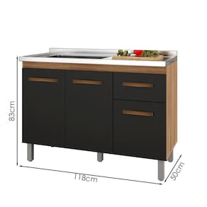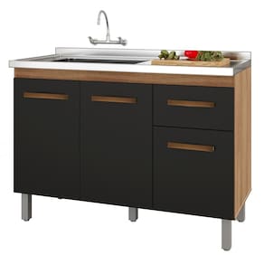 Balcão Sem Tampo Para Pia Anitta, uma excelente opção para sua casa. Estrutura em MDP de 12/15mm, com acabamento em pintura UV. Composto por 02 portas com dobradiças metálicas, uma prateleira interna para maior aproveitamento do espaço, 03 gavetas com corrediças metálicas, ideal para usar com pia de 120cm (pia não inclusa), puxadores em plástico cromado, pés fixos de 16,5cm que garantem a firmeza que o móvel precisa, possui perfeita combinação com os mais variados ambientes. Você pode compor sua cozinha da forma que desejar. Este móvel chegará em sua casa separado em 01 volume.
