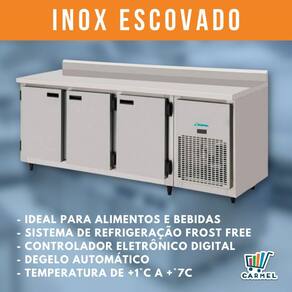 Balcão Serviço Encosto Inox Escovado 3 Portas / Direto KBSC-200D - Kofisa