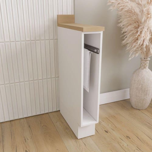 O Balcão Toalheiro 15cm Com Tampo Com Rodapé Ipanema é um móvel ideal para compor a decoração da sua cozinha. O balcão é fabricado em MDP e possui acabamento em BP, materiais de alta qualidade e resistência, proporcionando durabilidade e praticidade no uso diário. O recurso do porta-panos deslizante é uma adição funcional, permitindo que você armazene e acesse toalhas com facilidade. A fita de borda em PVC e o rodapé plástico trazem maior proteção contra umidade e prolongam a vida útil do móvel, além de ser fácil de limpar. Uma opção prática e funcional para quem busca organização e estilo em sua casa. Suporta Granito: Sim Produto Montado: Sim Acabamento: BP Melamínico Acabamento dos Pés: Liso Acompanha Tampo: Sim Altura dos Pés: 13 cm Ambiente Principal: Cozinha Balcão Acompanha Pia: Não Cesto para Frutas: Não codigo_ean: 7909903424667 Complexidade da Montagem: Baixa: pode ser montado por uma pessoa sozinha Cor: Acácia/Branco Cor do Produto: Acácia/Branco Cor Interna: Branco Escala de Brilho: Fosco Espessura do Material da Estrutura: 15 mm Informações Complementares: Altura dos pés 13 cm. fechado e 16 cm. Aberto Itens Inclusos: 1 Balcão + Tampo + Rodapés + Manual de Montagem + Kit Ferragens Linha ou Coleção: Ipanema Manual de Montagem e Instalação: https://product-hub-prd.madeiramadeira.com.br/869787/documents/ed2e56d7-7049-46a5-bff6-ce2b0ec032cd613315balcaotoalheiro150mm.pdf Material do Tampo: MDP Material dos Pés: Plástico Medida do Tampo (L x C x E): 15cmx52cmx9,5cm modular: Sim Montagem Flex: Não Necessita Montagem: Sim O Balcão Acompanha Pia: Não Origem do Produto: Nacional Pés Reguláveis: Sim Peso: 11 kg Possui Pés: 04 Possui Portas: Não Possui recorte para Cooktop: Não Recomendações de Uso, Manutenção e Limpeza: Use um pano levemente umedecido com água, seguido de pano seco. Não utilize produtos químicos ou abrasivos. Sapatas Niveladoras: Não Sistema de Montagem: Sistema de montagem via cavilhas, parafusos, minifix e pregos. Suporta Até (kg): 25 kg Ean: 7909903424667