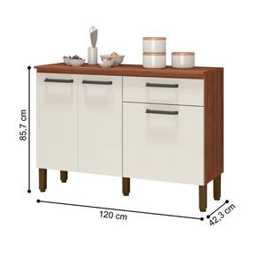 Com madeira reconstituída, que respeita o meio ambiente. Composto de três portas e uma gaveta, onde são utilizadas dobradiças e corrediças 100% metálicas, tampo que traz a praticidade de utilização de decorações, utensílios para cozinha e até mesmo eletrodomésticos. Os puxadores são ergonômicos em plástico resistente (poliestireno). Possui pés reguláveis em plástico resistente que garantem a estabilidade do produto. Acabamento com pintura UV.