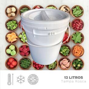 Balde Plástico 12 Litros com Tampa Rosca e Lacre de Segurança - Kit com 4 Peças