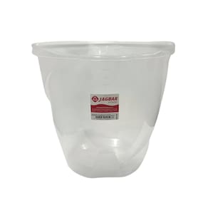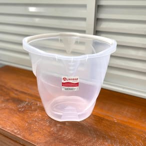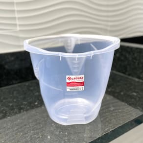 o balde 16 litros Translúcido graduado Jaguar possui as graduações na lateral e informativo de litragem no bico.