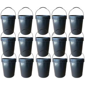 Balde Plástico 16 Litros com Tampa de Segurança e Alça Plástica - Kit com 15 Peças