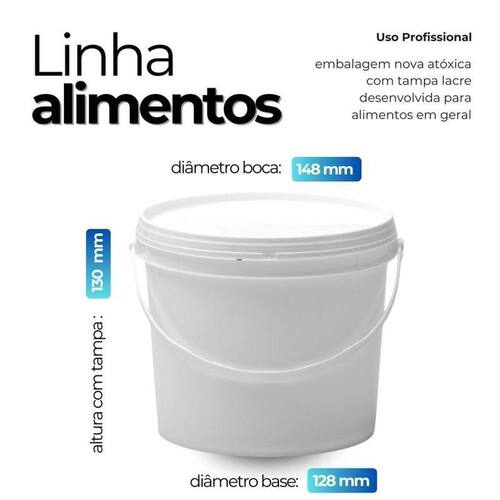 Balde branco 1.8 litros com tampa lacre de segurança 100% bpa free - kit com 8 peças Importante: Os baldes sao comercializados vazios e sem impressão. O titulo do anuncio e o rotulo na foto são apenas sugestoes de uso Conteúdo do kit: 08 x baldes brancos com alça plástica de 1.8 litros 08 x tampas plásticas brancas com lacre de segurança Imagine abrir sua geladeira e encontrar todos os seus alimentos perfeitamente organizados e protegidos. Com nossos baldes brancos, economia tempo evitando bagunça. A tampa com lacre de segurança garante que seus alimentos permaneçam frescos por mais tempo, evitando desperdícios e economizando dinheiro. Os baldes industriais da nastripack são fabricados com matéria-prima 100% virgem e atóxica, em conformidade com os requisitos da anvisa. Produzidos em equipamentos de última geração, esses baldes apresentam alta produtividade e baixo impacto ambiental. Ideal para: Uso comercial: restaurantes, padarias, lanchonetes, food trucks, cozinhas industriais. Uso doméstico: organizar e armazenar alimentos na geladeira, freezer ou despensa. Vantagens: Perfeito para congelamento: congele porções individuais de alimentos ou guarde sobras de forma segura e prática. Resistência térmica: suportam baixas e altas temperaturas, sendo aprovados para contato direto com alimentos. Versatilidade: ideal para armazenamento de tintas, químicos, produtos agrícolas, lubrificantes e alimentos. Tampa lacre: fechamento seguro e fácil de colocar, com design que permite empilhamento seguro. Reutilizáveis e sustentáveis: diminua o uso de embalagens descartáveis e contribua para um planeta mais limpo. Estes baldes são resistentes e podem ser reutilizados diversas vezes Fácil transporte: leves e com alça resistente, são práticos para transportar seus alimentos com segurança. Benefícios: Segurança alimentar: fabricados em polipropileno virgem, 100% livre de bpa e atóxico, garantindo que seus alimentos estejam protegidos e conservados de forma segura. Tampa com lacre de segurança: vedação hermética que impede a entrada de ar, umidade, poeira e insetos, mantendo seus alimentos frescos por mais tempo. Empilhável: otimize o espaço de armazenamento, seja na geladeira, freezer, despensa ou prateleiras. Resistente: suporta baixas e altas temperaturas, podendo ser levado ao freezer ou micro-ondas sem a tampa . Satisfação garantida: se por algum motivo você não estiver satisfeito com o produto, oferecemos de devolução do seu dinheiro. Compre agora e experimente a diferença Especificações técnicas: Balde: Diâmetro interno superior: 144,60 mm Diâmetro interno inferior: 125,00 mm Diâmetro externo superior: 152,90 mm Diâmetro externo inferior: 128,60 mm Diâmetro externo máximo: 164,50 mm Altura interna: 126,60 mm Altura externa: 129,50 mm Altura com a tampa: 130,50 mm Espessura média lateral: 0,75 mm Espessura média no fundo: 0,77 mm Peso: 50 gramas Material: polipropileno random Tampa: Diâmetro externo: 191,50 mm Altura: 12,10 mm Espessura média de parede: 0,80 mm Peso: 18 gramas Material: polipropileno random Descrição do produto: O balde branco de 1.8 litros com tampa lacre é um recipiente versátil, projetado para o armazenamento seguro Principais características: Material seguro: fabricado em polipropileno pp de alta densidade, seguro para contato com alimentos. Design prático: a forma redonda permite empilhamento fácil, otimizando o espaço de armazenamento. Capacidade adequada: com 1.8 litros, é ideal para uso comercial em restaurantes, padarias, indústrias alimentícias, entre outros.