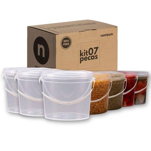 Balde transparente 1.8 litros com tampa lacre de segurança 100% bpa free - kit com 7 peças Importante: Os baldes sao comercializados vazios e sem impressão. O titulo do anuncio e o rotulo na foto são apenas sugestoes de uso Conteúdo do kit: 7 x baldes transparentes com alça plástica de 1.8 litros 7 x tampas plásticas transparentes com lacre de segurança Imagine abrir sua geladeira e encontrar todos os seus alimentos perfeitamente organizados e protegidos. Com nossos baldes transparentes, você visualiza o conteúdo sem precisar abrir as tampas, economizando tempo e evitando bagunça. A tampa com lacre de segurança garante que seus alimentos permaneçam frescos por mais tempo, evitando desperdícios e economizando dinheiro. Os baldes industriais da nastripack são fabricados com matéria-prima 100% virgem e atóxica, em conformidade com os requisitos da anvisa. Produzidos em equipamentos de última geração, esses baldes apresentam alta produtividade e baixo impacto ambiental. Ideal para: Uso comercial: restaurantes, padarias, lanchonetes, food trucks, cozinhas industriais. Uso doméstico: organizar e armazenar alimentos na geladeira, freezer ou despensa. Vantagens: Perfeito para congelamento: congele porções individuais de alimentos ou guarde sobras de forma segura e prática. Resistência térmica: suportam baixas e altas temperaturas, sendo aprovados para contato direto com alimentos. Versatilidade: ideal para armazenamento de tintas, químicos, produtos agrícolas, lubrificantes e alimentos. Tampa lacre: fechamento seguro e fácil de colocar, com design que permite empilhamento seguro. Reutilizáveis e sustentáveis: diminua o uso de embalagens descartáveis e contribua para um planeta mais limpo. Estes baldes são resistentes e podem ser reutilizados diversas vezes Fácil transporte: leves e com alça resistente, são práticos para transportar seus alimentos com segurança. Benefícios: Segurança alimentar: fabricados em polipropileno virgem, 100% livre de bpa e atóxico, garantindo que seus alimentos estejam protegidos e conservados de forma segura. Tampa com lacre de segurança: vedação hermética que impede a entrada de ar, umidade, poeira e insetos, mantendo seus alimentos frescos por mais tempo. Transparência: visualize o conteúdo sem precisar abrir o balde, facilitando a organização e identificação dos alimentos. Empilhável: otimize o espaço de armazenamento, seja na geladeira, freezer, despensa ou prateleiras. Resistente: suporta baixas e altas temperaturas, podendo ser levado ao freezer ou micro-ondas sem a tampa . Satisfação garantida: se por algum motivo você não estiver satisfeito com o produto, oferecemos de devolução do seu dinheiro. Compre agora e experimente a diferença Especificações técnicas: Balde: Diâmetro interno superior: 144,60 mm Diâmetro interno inferior: 125,00 mm Diâmetro externo superior: 152,90 mm Diâmetro externo inferior: 128,60 mm Diâmetro externo máximo: 164,50 mm Altura interna: 126,60 mm Altura externa: 129,50 mm Altura com a tampa: 130,50 mm Espessura média lateral: 0,75 mm Espessura média no fundo: 0,77 mm Peso: 50 gramas Material: polipropileno random Tampa: Diâmetro externo: 191,50 mm Altura: 12,10 mm Espessura média de parede: 0,80 mm Peso: 18 gramas Material: polipropileno random Descrição do produto: O balde transparente de 1.8 litros com tampa lacre é um recipiente versátil, projetado para o armazenamento seguro de alimentos. A transparência do balde facilita a visualização do conteúdo, tornando mais prático o uso no dia a dia. Principais características: Material seguro: fabricado em polipropileno pp de alta densidade, seguro para contato com alimentos. Design prático: a forma redonda permite empilhamento fácil, otimizando o espaço de armazenamento. Capacidade adequada: com 1.8 litros, é ideal para uso comercial em restaurantes, padarias, indústrias alimentícias, entre outros.
