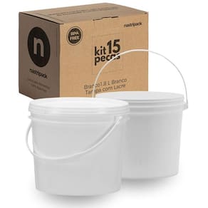 Balde branco 1.8 litros com tampa lacre de segurança 100% bpa free - kit com 15 peças Importante: Os baldes sao comercializados vazios e sem impressão. O titulo do anuncio e o rotulo na foto são apenas sugestoes de uso Conteúdo do kit: 15 x baldes brancos com alça plástica de 1.8 litros 15 x tampas plásticas brancas com lacre de segurança Imagine abrir sua geladeira e encontrar todos os seus alimentos perfeitamente organizados e protegidos. Com nossos baldes brancos, economia tempo evitando bagunça. A tampa com lacre de segurança garante que seus alimentos permaneçam frescos por mais tempo, evitando desperdícios e economizando dinheiro. Os baldes industriais da nastripack são fabricados com matéria-prima 100% virgem e atóxica, em conformidade com os requisitos da anvisa. Produzidos em equipamentos de última geração, esses baldes apresentam alta produtividade e baixo impacto ambiental. Ideal para: Uso comercial: restaurantes, padarias, lanchonetes, food trucks, cozinhas industriais. Uso doméstico: organizar e armazenar alimentos na geladeira, freezer ou despensa. Vantagens: Perfeito para congelamento: congele porções individuais de alimentos ou guarde sobras de forma segura e prática. Resistência térmica: suportam baixas e altas temperaturas, sendo aprovados para contato direto com alimentos. Versatilidade: ideal para armazenamento de tintas, químicos, produtos agrícolas, lubrificantes e alimentos. Tampa lacre: fechamento seguro e fácil de colocar, com design que permite empilhamento seguro. Reutilizáveis e sustentáveis: diminua o uso de embalagens descartáveis e contribua para um planeta mais limpo. Estes baldes são resistentes e podem ser reutilizados diversas vezes Fácil transporte: leves e com alça resistente, são práticos para transportar seus alimentos com segurança. Benefícios: Segurança alimentar: fabricados em polipropileno virgem, 100% livre de bpa e atóxico, garantindo que seus alimentos estejam protegidos e conservados de forma segura. Tampa com lacre de segurança: vedação hermética que impede a entrada de ar, umidade, poeira e insetos, mantendo seus alimentos frescos por mais tempo. Empilhável: otimize o espaço de armazenamento, seja na geladeira, freezer, despensa ou prateleiras. Resistente: suporta baixas e altas temperaturas, podendo ser levado ao freezer ou micro-ondas sem a tampa . Satisfação garantida: se por algum motivo você não estiver satisfeito com o produto, oferecemos de devolução do seu dinheiro. Compre agora e experimente a diferença Especificações técnicas: Balde: Diâmetro interno superior: 144,60 mm Diâmetro interno inferior: 125,00 mm Diâmetro externo superior: 152,90 mm Diâmetro externo inferior: 128,60 mm Diâmetro externo máximo: 164,50 mm Altura interna: 126,60 mm Altura externa: 129,50 mm Altura com a tampa: 130,50 mm Espessura média lateral: 0,75 mm Espessura média no fundo: 0,77 mm Peso: 50 gramas Material: polipropileno random Tampa: Diâmetro externo: 191,50 mm Altura: 12,10 mm Espessura média de parede: 0,80 mm Peso: 18 gramas Material: polipropileno random Descrição do produto: O balde branco de 1.8 litros com tampa lacre é um recipiente versátil, projetado para o armazenamento seguro Principais características: Material seguro: fabricado em polipropileno pp de alta densidade, seguro para contato com alimentos. Design prático: a forma redonda permite empilhamento fácil, otimizando o espaço de armazenamento. Capacidade adequada: com 1.8 litros, é ideal para uso comercial em restaurantes, padarias, indústrias alimentícias, entre outros.