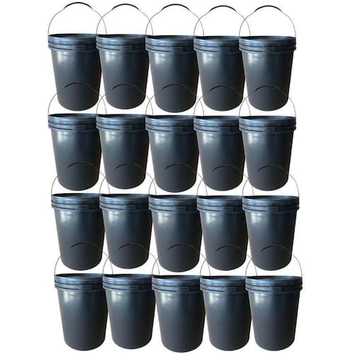 20 x Baldes Pretos de 20 Litros com Alça Plástica 20 x Tampas Pretas com Lacre de Segurança