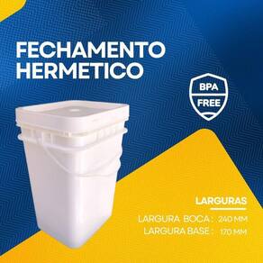 Balde retangular 20 litros com tampa lacre de segurança e alça plastica 100% bpa free - 04 peças