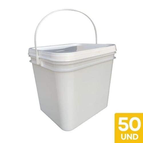 Balde retangular 3. 6 litros com tampa lacre de segurança 100% bpa free - 50 peças