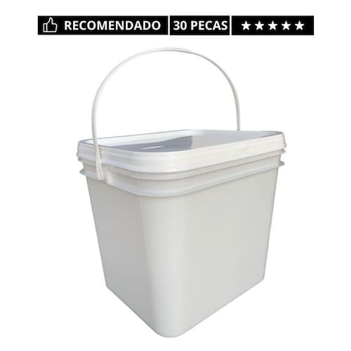 Balde retangular 3. 6 litros com tampa lacre de segurança 100% bpa free - 30 peças