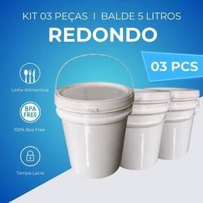 Balde 5 litros novo atóxico com tampa lacre e alça plástica nastripack - kit 03 peças