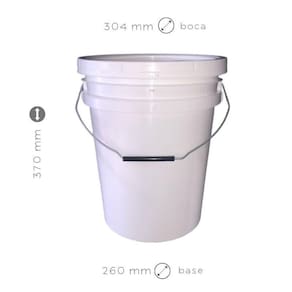 - 01 x balde branco de 20 l com alça metálica - 01 x tampa branca com lacre de segurança