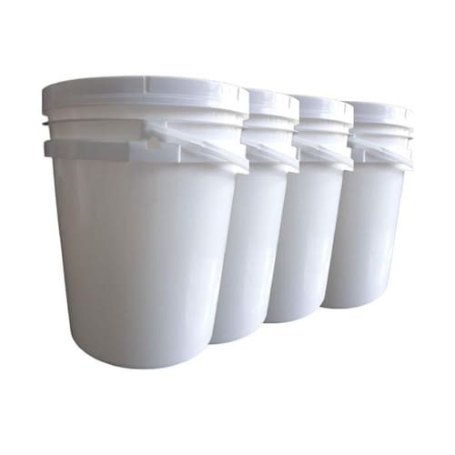 - 04 x baldes brancos de 20 l com alça plastica - 04 x tampas brancas com lacre de segurança