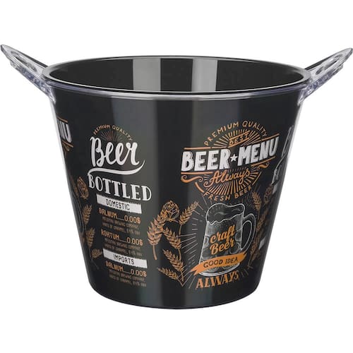 - Este bonito balde duplo para cerveja com estampas coloridas tem muito charme e personalidade. Além de ser uma peça decorativa, mantém as bebidas na temperatura certa sempre prontas para serem servidas.