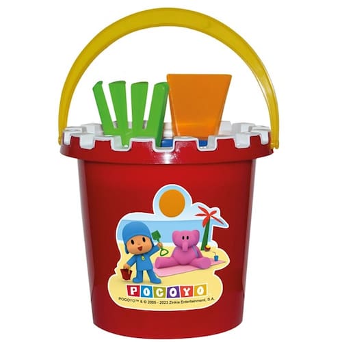 Balde Castelinho do Pocoyo inclui vários itens como pá, rastelo, peneira e afins que são ideais para estimular a criatividade e raciocínio das crianças no momento das brincadeiras.