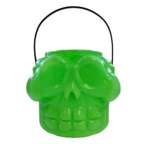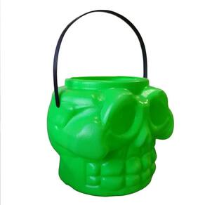 Balde caveira crânio doces com alça neon verde 16cm halloween esse modelo ele vem em uma cor toda especial neon que brilha quando utilizado luz negra sobre o balde que é muito comum de ser utilizado esse tipo de luzes no halloween. Dimensões: 16cm de altura x 16cm de largura sem considerar a alça composição: 100% plástico contém: 1 unidade atenção: imagem meramente ilustrativa. Pode ocorrer mudanças no tom da cor para o produto real ou mudanças na embalagem sem aviso prévio por parte do fornecedor/fabricante. Marca: Studio Das Festas