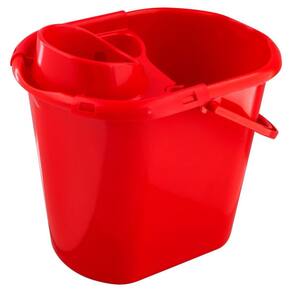 Balde de plástico reforçado para armazenar até 12 litros. Com escorredor para ser utilizado com Mop Lava e Seca com cabeleira de algodão para centrifugação manual.