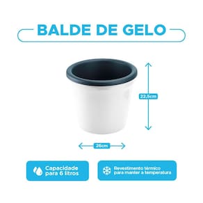 - Capacidade de 6 Litros: Ideal para grandes quantidades de gelo e bebidas.