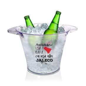 Balde De Gelo Criativo Profissional Da Saúde - Jaleco O Balde de Gelo de 5 Litros com espaço para em média 3 Cervejas tem possibilidade de personalização com o nome da sua festa ou marca, não existe melhor bebida para celebrar com os amigos do que cerveja, sempre geladinha no seu balde personalizado. Especificações: Material: Poliestireno Acrílico PS , Altura: 20 cm, Diâmetro: 23 cm, Capacidade: 5L, Cor: Transparente