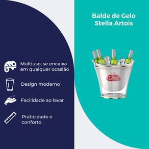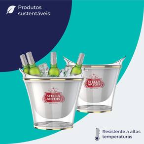 O Balde Oficial da marca Stella Artois é desenvolvido em dois tipos de material em perfeita junção, com ABS Cristal transparente na parede externa traduzindo todo requinte da marca esteticamente. Seu design sofisticado remete a champanheira, feito com paredes duplas minimizam a troca de calor permitindo que o gelo demore mais para fusão (água em seu estado sólido para líquido) e o mais importante, minimizando a quantidade de líquido que é gerado no lado externo do balde com a troca de calor.