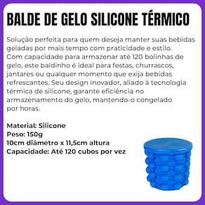 Solução perfeita para quem deseja manter suas bebidas geladas por mais tempo com praticidade e estilo. Com capacidade para armazenar até 120 bolinhas de gelo, este baldinho é ideal para festas, churrascos, jantares ou qualquer momento que exija bebidas refrescantes. Seu design inovador, aliado à tecnologia térmica de silicone, garante eficiência no armazenamento do gelo, mantendo-o congelado por horas.